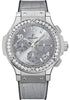 41 mm stainless steel case, diamond bezel, grey dial, self-winding movement with chronograph, grey rubber and alligator strap. Water resistant to 100 meters.