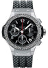 41mm stainless steel case, stainless steel bezel set with 114 diamonds, black dial, self winding HUB 41 movement with chronograph function, approximately 42 hours of power reserve, black rubber strap with deployant buckle. Water resistant to 100 meters.