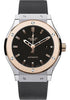 42 mm titanium case, black composite resin lateral inserts and bezel end pieces, 18K King gold bezel, sapphire crystal, mat black dial, HUB 1110 self-winding movement, approximately 42 hours of...