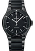 Hublot Classic Fusion Black Magic Bracelet Watch 45 mm satin-finished and polished black ceramic case, satin-finished and polished black ceramic bezel with 6 H-shaped titanium screws, sapphire crystal with anti-reflective treatment, mat black dial, HUB1112 self-winding movement with movement, approximately 42 hours of power reserve, polished and satin-finished black ceramic bracelet, black-plated stainless steel deployant buckle. Water resistant to 50 meters.