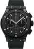 Hublot Classic Fusion Chronograph Black Magic Watch 45 mm polished and satin-finished black ceramic case, vertical satin-finished black ceramic bezel with 6 H-shaped titanium screws, sapphire crystal with anti-reflective treatment, black dial with Mat Carbon Fiber Dial, Satin-finished Rhodium-plated Appliques and polished rhodium-plated handsand Polished Rhodium-plated Hands, HUB1143 self-winding movement with chronograph, approximately 42 hours of power reserve, black lined rubber strap, black PVD stainless steel deployant buckle. Water resistant to 50 meters.