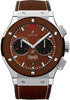 Hublot Classic Fusion 45mm Chronograph ForbiddenX Limited Edition of 250 Watch 45mm polished and satin-finished titanium case Forbidden X logo engraved solid back,, brown ceramic bezel with 6 H-shaped titanium screws, sapphire crystal with interior and exterior anti-reflective treatment, real tobacco leaf dial with black counters, red chronograph hand, ForbiddenX logo at 12 o'clock, self winding HUB 1143 movement with chronograph function, approximately 42 hours of power reserve, tobacco-colored calfskin sewn onto black rubber strap with beige stitching and Forbidden X, deployant steel buckle. Water resistant to 50 meters.