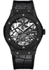 Hublot Classic Fusion Skeleton Tourbillon All Black Limited Edition of 99 Watch 45mm polished and satin-finished black ceramic case sapphire crystal back,, vertical satin-finish black ceramic bezel with 6 H-shaped titanium screws, black composite resin lateral inserts and bezel lugs, sapphire crystal with anti-reflective treatment and printed Hublot logo on the inside, sapphire dial with satin-finished black plated appliques and polished black plated hands, manual winding MHUB 6010.H1.1 movement with skeleton tourbillon, approximately 120 hours of power reserve, black rubber and alligator strap, deployant buckle. Water resistant to 50 meters.