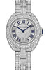 31mm 18K white gold case set with brilliant-cut diamonds, 11.04mm thick, 18K white gold bezel set with brilliant-cut diamonds, silver dial with brilliant-cut diamonds, caliber 1847 MC automatic movement with sword-shaped hands, 18K white gold bracelet, 18K white gold buckle set with brilliant-cut diamonds. Water resistant to 3 bar.