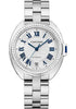 35mm 18K rhodiumized white gold case with brilliant cut diamonds, 10.09mm thick, sapphire back, 18K white gold crown with a sapphire cabochon, sapphire crystal, white dial with flinque sunray effect and blued-steel sword-shaped hands, caliber 1847 MC automatic movement, 18K white gold bracelet. Water resistant to 30 meters.