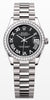 This Oyster Perpetual Datejust 31 in 18 kt white gold features a bright black dial and a President bracelet.