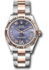 31mm Everose Rolesor case comprised of Oystersteel and 18K Everose gold, screw-down back, screw-down crown with twinlock double waterproofness system, 18K Everose gold fluted bezel, scratch-resistant sapphire crystal with cyclops lens over the date, aubergine dial, Roman numerals with diamond set 6, Rolex calibre 2236 perpetual self-winding movement with date at 3 o'clock, approximately 55 hours of power reserve, Eversose Rolesor Oyster bracelet made from a combination of steel and 18K everose gold with flat three-piece links, folding Oysterclasp buckle with Easylink 5mm comfort extension link. Waterproof to 100 meters. Baselworld 2019 release.