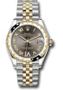 31mm yellow Rolesor case comprised of Oystersteel and 18K yellow gold, screw-down back, screw-down crown with twinlock double waterproofness system, 18K yellow gold domed bezel set with diamonds, scratch-resistant sapphire crystal with cyclops lens over the date, dark grey dial, Roman numerals with 11 diamonds set on VI, Rolex calibre 2236 perpetual self-winding movement with date at 3 o'clock, approximately 55 hours of power reserve, yellow Rolesor Jubilee bracelet with semi-circular three-piece links, concealed folding Crownclasp buckle. Waterproof to 100 meters. Baselworld 2019 release.