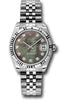 31mm stainless steel case, 18k white gold fluted bezel, dark mother of pearl dial, diamond hour markers, and Jubilee bracelet.