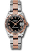 31mm stainless steel case, 18K pink gold fluted bezel, black dial, Roman numerals, and stainless steel and 18K pink gold Oyster bracelet.