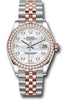 31mm Everose Rolesor case comprised of Oystersteel and 18K Everose gold, screw-down back, screw-down crown with twinlock double waterproofness system, 18K Everose gold bezel set with 46 diamonds, scratch-resistant sapphire crystal with cyclops lens over the date, white mother-of-pearl dial, diamond hour markers, Rolex calibre 2236 perpetual self-winding movement with date at 3 o'clock, approximately 55 hours of power reserve, Everose Rolesor Jubilee bracelet with semi-circular three-piece links, concealed folding Crownclasp buckle. Waterproof to 100 meters. Baselworld 2019 release.