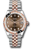 31mm Everose Rolesor case comprised of Oystersteel and 18K Everose gold, screw-down back, screw-down crown with twinlock double waterproofness system, 18K Everose gold domed bezel set with 24 diamonds, scratch-resistant sapphire crystal with cyclops lens over the date, chocolate dial, diamond hour markers, Rolex calibre 2236 perpetual self-winding movement with date at 3 o'clock, approximately 55 hours of power reserve, Everose Rolesor Jubilee bracelet with semi-circular three-piece links, concealed folding Crownclasp buckle. Waterproof to 100 meters. Baselworld 2019 release.