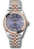 31mm Everose Rolesor case comprised of Oystersteel and 18K Everose gold, screw-down back, screw-down crown with twinlock double waterproofness system, 18K Everose gold domed bezel set with 24 diamonds, scratch-resistant sapphire crystal with cyclops lens over the date, aubergine dial, Roman numerals with diamond set 6, Rolex calibre 2236 perpetual self-winding movement with date at 3 o'clock, approximately 55 hours of power reserve, Everose Rolesor Jubilee bracelet with semi-circular three-piece links, concealed folding Crownclasp buckle. Waterproof to 100 meters. Baselworld 2019 release.
