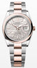This Oyster Perpetual Datejust 36 in Oystersteel and Everose gold features a silver, palm-motif dial and an Oyster bracelet.