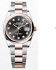 This Oyster Perpetual Datejust 36 in Oystersteel and Everose gold features a bright black, diamond-set dial and an Oyster bracelet.