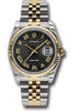 36mm stainless steel case, 18K yellow gold fluted bezel, black Jubilee dial, Roman numerals, and stainless steel and 18K yellow gold Jubilee bracelet.
