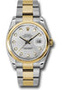 36mm stainless steel case, 18K yellow gold domed bezel, silver dial, diamond hour markers, and stainless steel and 18K yellow gold Oyster bracelet.