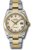36mm stainless steel case, 18K yellow gold domed bezel, ivory pyramid dial, Roman numerals, and stainless steel and 18K yellow gold Oyster bracelet.