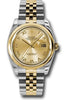 36mm stainless steel case, 18K yellow gold domed bezel, champagne dial, Roman numerals, and stainless steel and 18K yellow gold Jubilee bracelet.