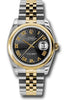 36mm stainless steel case, 18K yellow gold domed bezel, black sunbeam dial, Roman numerals, and stainless steel and 18K yellow gold Jubilee bracelet.