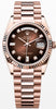 The Oyster Perpetual Day-Date 36 in 18 kt Everose gold with a brown ombré, diamond-set dial, fluted bezel and a President bracelet.