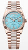 The Oyster Perpetual Day-Date 36 in 18 kt Everose gold with a turquoise, diamond-set dial, fluted bezel and a diamond-set President bracelet.