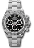 Rolex Oyster Perpetual Cosmograph Daytona 116520 blk 40mm stainless steel case, tachymeter engraved bezel, screw-down push buttons, black dial, and Oysterlock bracelet.44 jewel Rolex chronometer movement.
