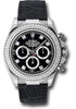 Rolex Oyster Perpetual Cosmograph Daytona 116589RBR bkd 40mm 18K white gold case, bezel set with 124 diamonds, screw-down push buttons, black dial, 8 diamond hour markers, and black strap with 18K white gold deployable fliplock clasp.