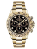 Rolex Oyster Perpetual Cosmograph Daytona 116508 bkd 40mm 18K yellow gold case, screw-down back, screw-down crown and push buttons with Triplock triple waterproofness, fixed 18K yellow gold bezel with engraved tachymetric scale, scratch-resistant sapphire crystal, black dial, diamond hour markers, Rolex calibre 4130 self-winding movement with chronograph central second hand, 30-minute counter at 3 o'clock, and 12-hour counter at 9 o'clock, approximately 72 hours of power reserve, 18K yellow gold Oyster bracelet with flat three-piece links, folding Oysterlock buckle with Easylink 5mm comfort extension link. Waterproof to 100 meters.