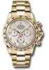 Rolex Oyster Perpetual Cosmograph Daytona 116508 md 40mm 18K yellow gold case, screw-down back, screw-down crown and push buttons with Triplock triple waterproofness, fixed 18K yellow gold bezel with engraved tachymetric scale, scratch-resistant sapphire crystal, mother of pearl dial, diamond hour markers, Rolex calibre 4130 self-winding movement with chronograph central second hand, 30-minute counter at 3 o'clock, and 12-hour counter at 9 o'clock, approximately 72 hours of power reserve, 18K yellow gold Oyster bracelet with flat three-piece links, folding Oysterlock buckle with Easylink 5mm comfort extension link. Waterproof to 100 meters.