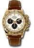 Rolex Oyster Perpetual Cosmograph Daytona 116518 ibkbr 40mm 18K yellow gold case, tachymeter engraved bezel, screw-down push buttons, ivory dial, black subdials, Arabic numerals, and brown strap with 18K yellow gold deployable fliplock clasp. products we sell and have no affiliation with the manufacturer.
