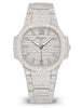 Patek Philippe presents the Nautilus Haute Joaillerie reference 7118/1450 in a new white gold interpretation featuring a case, bezel and bracelet adorned with snow-set diamonds and a dial illuminated by rows of stones set in the small raised wave pattern typical of the ladies’ Nautilus collection. The architecture and meticulous finishing of the self-winding caliber 324 S are visible through a transparent sapphire crystal case back. The bracelet is equipped with a patented Patek Philippe fold-over clasp secured by four independent catches. The new Nautilus Haute Joaillerie sparkles with the fire of 2,553 brilliant-cut internally flawless Top Wesselton (~12.69 cts).