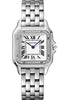 27mm x 37mm 18K rhodiumized white gold case with brilliant cut diamonds, 6mm thick, diamond crown, sapphire crystal, silvered dial with blued-steel sword-shaped hands, quartz movement, 18K rhodiumized white gold bracelet. Water resistant to 30 meters.