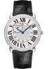 Extra large size (42mm) 18K white gold case set with round diamonds, circular-grained crown with set with a diamond, rhodiumized 18K white gold dial with center paved with round diamonds surrounded by silvered flinqué decoration, manual winding caliber 9754 MC movement, alligator strap with rhodiumized 18K white gold deployant buckle. Water resistant to 30 meters.