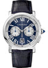 Cartier Rotonde de Cartier Chronograph Watch 40mm 18K pink gold case, 12.15mm thick, sapphire back, beaded 18K pink gold crown set with a sapphire cabochon, sapphire crystal, silvered sunray effect dial with blued-steel apple-shaped hands and blued-steel sword-shaped counter hands, caliber 1904-CH MC self-winding movement with calendar aperture at 6 o'clock, brown semi-matte alligator skin strap, double adjustable folding 18K pink gold buckle. Water resistant to 30 meters.