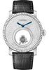 Cartier Rotonde de Cartier Mysterious Double Tourbillon Watch 45 mm platinum case, 5 mm thick, platinum crown set with a brilliant-cut faceted diamond of 0.20 carats, bezel set with 72 brilliant-cut diamonds totaling 1.26 carats, sapphire crystal, rhodiumized 18K white gold dial set with 568 brilliant-cut diamonds totaling 1.97 carats, caliber 9454 MC, certified "Poinçon de Genève" manual movement, approximately 52 hours of power reserve, double adjustable folding rhodiumized 18K white gold buckle.
