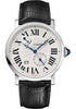 42mm 18K white gold case, circular-grained crown with set with a sapphire cabochon, silver dial with 12 Roman numerals, manual winding caliber 9910 MC movement with small seconds at 5 o'clock and large date at 7 o'clock, approximately 8 days of power reserve, alligator strap with double adjustable folding buckle. Water resistant to 30 meters.