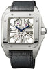 Cartier Santos 100 Skeleton Limited Edition Watch Extra large size (46.5mm x 54.9mm) palladium case, transparent back, Roman numerals dial, manual winding calibre 9611 MC movement, alligator strap with palladium deployant buckle. Water resistant to 30 meters.
