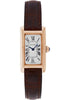Small size, 18K pink gold case, silver dial, quartz movement, alligator strap with 18K gold tang type buckle. Water resistant to 30 meters (100 fe