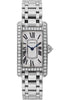 Small size, 18K white gold case set with diamonds, silver dial, quartz movement, 18K white gold bracelet. Water resistant to 30 meters (100 feet).