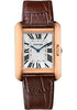 34.7mm x 26.2mm 18K pink gold case, 7.1mm thick, sapphire back, 9-sided crown, 18K pink gold bezel, sapphire crystal, silver dial, quartz movement with blued-steel sword-shaped hands, brown alligator skin strap, ardillon buckle. Water resistant to 3 bar.