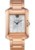 39.2mm x 29.8mm 18K pink gold case set with 11 brilliant-cut diamonds, 9.5mm thick, sapphire back, 9-sided crown set with a brilliant-cut diamond, 18K pink gold bezel set with a brilliant-cut diamonds, sapphire crystal, silver dial set with brilliant-cut diamonds, self-winding movement with sword-shaped hands in blued steel, 18K pink gold bracelet. Water resistant to 30 metres.