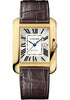 Cartier Tank Anglaise MM Watch 39.2mm x 29.8mm 18K yellow gold case, 9.5mm thick, nine sided crown set with a sapphire, sapphire crystal, silvered dial with blued steel hands, caliber Cartier 077 automatic movement with calendar aperture at 3 o'clock, brown alligator strap, 18K yellow gold buckle with 18mm ardillon. Water resistant to 30 meters.