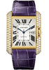 47mm x 36.2mm 18K yellow gold case set with diamonds, 9.82mm thick, nine sided crown with a cut diamond, sapphire crystal, silvered dial with blued steel hands, caliber 1904 MC automatic movement, aubergine alligator strap, double adjustable deployant buckle with 18K yellow gold. Water resistant to 30 meters.