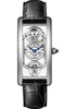Cartier Tank Cintrée Skeleton Watch platinum case, 8mm thick, sapphire back, beaded crown with a sapphire cabochon, mineral crystal, white dial with hours and minutes and skeletonized curved movement following the shape of the case, caliber 9917 MC manual movement skeletonized and curved movement following the shape of the case, the barrel and the balance are inclined so they can follow the shape of the movement, approximately 60 hours of power reserve, black alligator skin strap, 18K white gold double adjustable folding buckle. Water resistant to 30 meters.