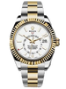 42mm yellow Rolesor case comprised of a 904L steel monobloc middle case, screw-down back, screw-down crown, 18K yellow gold fluted bezel with bidirectional rotatable Rolex Ring Command, scratch-resistant sapphire crystal with cyclops lens over the date and double anti-reflective coating, white dial, index hour markers, Rolex calibre 9001 automatic movement , second time-zone displayed via off-center rotating disc, Saros annual calendar with date at 3 o'clock and month indicated in discrete apertures at each of the 12 hour marks, stainless steel and 18K yellow gold Oyster bracelet, folding Oysterclasp buckle with Easylink 5mm comfort extension link. Waterproof to 100 meters.