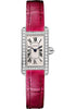 27mm x 15.2mm 18K white gold case set with brilliant-cut diamonds, 6.5mm thick, sapphire back, octagonal crown set with a brilliant-cut diamond, 18K white gold bezel set with a brilliant-cut diamonds, sapphire crystal, silver dial set with brilliant-cut diamonds, quartz movement with blued-steel sword-shaped hands, 18K white gold bracelet. Water resistant to 3 bar.