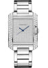 Medium size (39.2mm x 29.8mm) rhodiumized 18K white gold case set with brilliant-cut diamonds, nine-sided crown set with a brilliant-cut diamond, sapphire crystal, diamond paved rhodiumized 18K white gold dial, self-winding caliber Cartier 076 movement, rhodiumized 18K white gold bracelet. Water resistant to 30 meters.