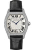 Large size (43mm x 38mm) 18K white gold case set with round diamonds, sapphire back, octagonal crown with set with a diamond, silver grained guilloché dial with Roman numerals, manual winding Cartier caliber 430 MC movement, alligator strap with 18K white gold adjustable deployant buckle. Water resistant to 30 meters.