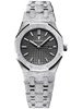 Audemars Piguet Royal Oak Frosted Gold Quartz Watch 33 mm hammered 18K white gold case, 7 mm thick, black dial with Grande Tapisserie pattern, white gold applied hour-markers and Royal Oak hands with luminescent coating, Calibre 2713 movement with hours, minutes, date, hammered 18K white gold bracelet, AP folding buckle. Water resistant to 50 m.